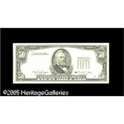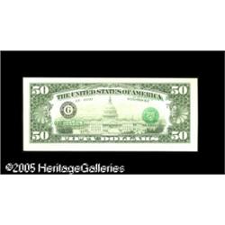 <B>Fr. 2124-G $50 1990 Federal Reserve Note. Gem Crisp Uncirculated.</B></I> A well centered and blazingly original Gem with the third printing on the reverse. The impressions of the treasury and bank seals are as deeply impressed into the surface of the paper as on any note we can ever recall seeing. A true standout. Lot:15172