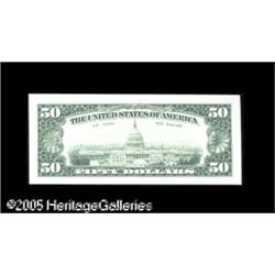 <B>Fr. 2125-K $50 1993 Federal Reserve Note. Gem New.</B></I><BR>This final $50 of the old design type, is missing the green portion of its third printing with no serial numbers, seal or their embossing. A dramatic error, particularly so on a higher denomination note. Lot:15145