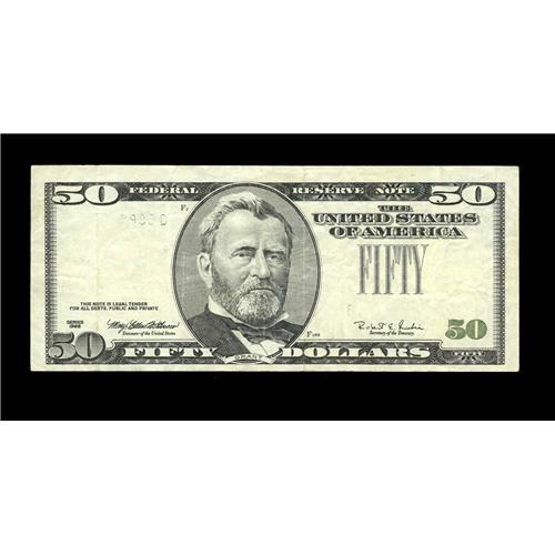 Fr. 2126-? $50 1996 Federal Reserve Note. Very Fine+. T Fr. 2126-? $50 1996 Federal Reserve Note. Ve