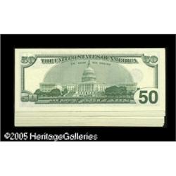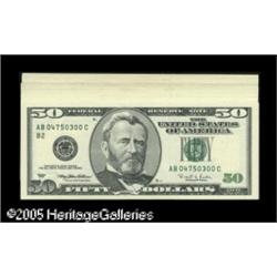 <B>Fr. 2126-B (3), B*, C, D, E, F, G, G*, H (2), I, J, J*, K, L (3), L* $50 1996 Federal Reserve Notes. Choice Crisp Uncirculated or Better.</B></I><BR> <B>Fr. 2127-E $50 1996 Federal Reserve Note. Choice Crisp Uncirculated.</B></I><BR>A couple of blocks are duplicated in this lot of $1050 face that has only the AI-A note in VF-XF below the assigned grade. Three stars round out this lot.<BR> 21 notes Lot:16299