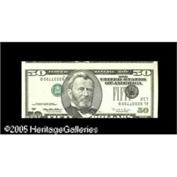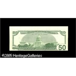 <B>Fr. 2126-L $50 1996 Federal Reserve Note. About New.</B></I><BR>This inverted third print new $50 has the cutting and centering problem that often accompanies this type of error. Lot:15126