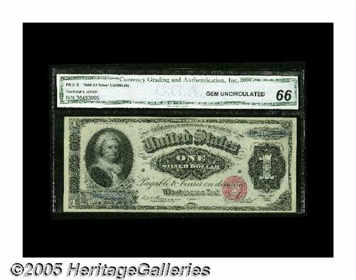 <B>Fr. 215 $1 1886 Silver Certificate CGA Gem Uncirculated 66.</B></I> A nicely margined example of this lead-off number of the Martha Washington Aces.