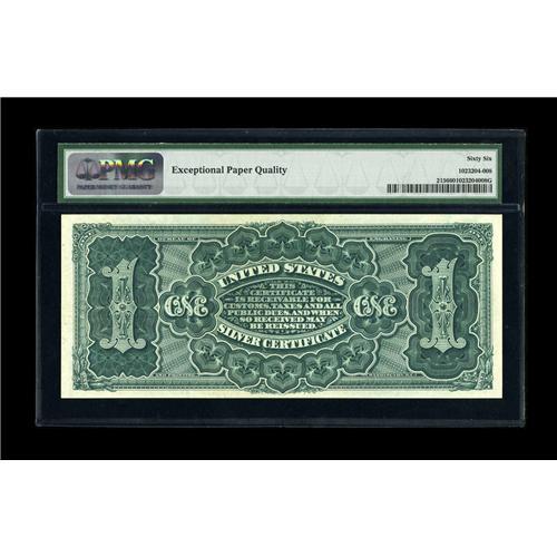 <B>Fr. 215 $1 1886 Silver Certificate PMG Gem Uncirculated 66 EPQ.</B></I> PMG has given this note its "Exceptional Paper Quality" comment that is so sought after in the marketplace. It is the commercial equivalent of PCGS' PPQ and the presence of either the EPQ or PPQ qualifier adds considerably to a note's value. This first Martha variety has broad margins, terrific eye appeal, and the all-important EPQ qualifier. Value may be added by the low serial number B6995.<BR><BR><b>Shipping:</b> Coin/Currency (<a target="_blank" href="http://www.heritageauctions.com/common/shipping.php">view shipping information</a>)