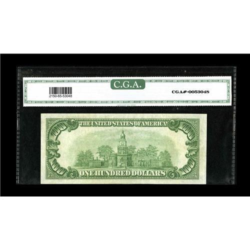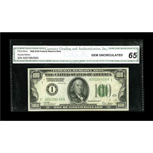 Fr. 2150-A $100 1928 Federal Reserve Note. CGA Gem Unci Fr. 2150-A $100 1928 Federal Reserve Note. C