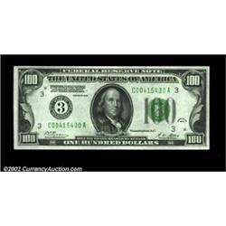 Fr. 2150-C $100 1928 Federal Reserve Note. Gem Crisp Uncirculated.Beautifully centered, crackling fresh, and blazingly original, a premium piece from a seldom offered district likely to bring very close to a four figure price. Important notice: We expect to be auctioning lots at the rate of 200-250 per hour. Sometimes eBay Premier live bid software cannot keep up with that pace, so we strongly recommend that you place a realistic proxy bid now as insurance to avoid disappointment. Also please note that all Heritage/CAA lots purchased through eBay Premier carry a 20% Buyer's Premium. Please make sure you read the Terms and Conditions.