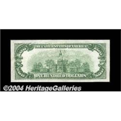 Fr. 2150-K $100 1928 Federal Reserve Note. Gem Crisp Uncirculated.The first of a consecutive pair of these rare Dallas district 1928 hundreds, both of which lay dormant in an unopened in a Treasury Department disbursement envelope dated March 9, 1944 for sixty years until consigned to us early in 2004. This piece is a crackling fresh and utterly original beauty fit for the finest of collections. <BR><BR><B>Important notice:</B> Heritage usually auctions material at the rate of 200-250 lots per hour. On some occasions eBay Live bid software or the Internet may not be able to keep up with the pace of the auction. We recommend placing a realistic absentee bid now as insurance to avoid disappointment. Occasionally the auctioneer may eliminate or reject an eBay Live bid, and the auctioneer may also reopen a lot after the close of the eBay live bidding (usually because we missed an audience bid), and may reject your bid even if it shows you as the winning bidder. By bidding via eBay Live, you agree that Heritage may award the lot to another bidder at its sole discretion under the circumstances described above or any other reasonable circumstances. Since eBay bids are not shown to us until we open the lot on the floor, we treat those bids just like floor bids. In most cases the floor responds before the eBay bid is presented to us, due to Internet lag time, so for consistency we have made it a policy that floor bids are always considered first over tie eBay live bids. Also please note that all Heritage lots purchased through eBay Live carry a 20% Buyer's Premium. Please make sure you read the Terms and Conditions before you bid. <BR><BR><B>IMPORTANT ANNOUNCEMENT ABOUT RESERVES:</B> Heritage now divulges all reserves on its web site 7 days before every auction. If you want to know whether the reserve on this lot has been met, and if not, what the reserve amount is, please visit this lot page on the HeritageCoin.com web site, or email: bid@HeritageGalleries.com