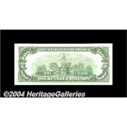Fr. 2150-K $100 1928 Federal Reserve Note. Gem Crisp Uncirculated.The second of this consecutive pair, and just as original and lovely as the first. This is the key district in the 1928 series, with a print run of only 80,140 pieces, few if any which are the equal of this example. <BR><BR><B>Important notice:</B> Heritage usually auctions material at the rate of 200-250 lots per hour. On some occasions eBay Live bid software or the Internet may not be able to keep up with the pace of the auction. We recommend placing a realistic absentee bid now as insurance to avoid disappointment. Occasionally the auctioneer may eliminate or reject an eBay Live bid, and the auctioneer may also reopen a lot after the close of the eBay live bidding (usually because we missed an audience bid), and may reject your bid even if it shows you as the winning bidder. By bidding via eBay Live, you agree that Heritage may award the lot to another bidder at its sole discretion under the circumstances described above or any other reasonable circumstances. Since eBay bids are not shown to us until we open the lot on the floor, we treat those bids just like floor bids. In most cases the floor responds before the eBay bid is presented to us, due to Internet lag time, so for consistency we have made it a policy that floor bids are always considered first over tie eBay live bids. Also please note that all Heritage lots purchased through eBay Live carry a 20% Buyer's Premium. Please make sure you read the Terms and Conditions before you bid. <BR><BR><B>IMPORTANT ANNOUNCEMENT ABOUT RESERVES:</B> Heritage now divulges all reserves on its web site 7 days before every auction. If you want to know whether the reserve on this lot has been met, and if not, what the reserve amount is, please visit this lot page on the HeritageCoin.com web site, or email: bid@HeritageGalleries.com