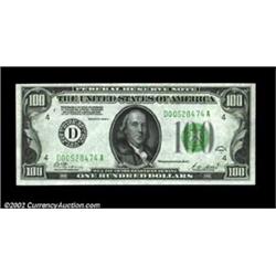 Fr. 2151-D $100 1928A Federal Reserve Note. Choice Crisp Uncirculated.An attractive example from a series which we have long felt was underrated and underpriced. The Oakes catalogue valuation here of $450 may prove a bit conservative. Important notice: We expect to be auctioning lots at the rate of 200-250 per hour. Sometimes eBay Premier live bid software cannot keep up with that pace, so we strongly recommend that you place a realistic proxy bid now as insurance to avoid disappointment. Also please note that all Heritage/CAA lots purchased through eBay Premier carry a 20% Buyer's Premium. Please make sure you read the Terms and Conditions.