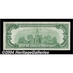 Fr. 2151-D $100 1928A Federal Reserve Note. Choice Crisp Uncirculated.A nice example from the Cleveland district. <BR><BR><B>Important notice:</B> Heritage usually auctions material at the rate of 200-250 lots per hour. On some occasions eBay Live bid software or the Internet may not be able to keep up with the pace of the auction. We recommend placing a realistic absentee bid now as insurance to avoid disappointment. Occasionally the auctioneer may eliminate or reject an eBay Live bid, and the auctioneer may also reopen a lot after the close of the eBay live bidding (usually because we missed an audience bid), and may reject your bid even if it shows you as the winning bidder. By bidding via eBay Live, you agree that Heritage may award the lot to another bidder at its sole discretion under the circumstances described above or any other reasonable circumstances. Since eBay bids are not shown to us until we open the lot on the floor, we treat those bids just like floor bids. In most cases the floor responds before the eBay bid is presented to us, due to Internet lag time, so for consistency we have made it a policy that floor bids are always considered first over tie eBay live bids. Also please note that all Heritage lots purchased through eBay Live carry a 20% Buyer's Premium. Please make sure you read the Terms and Conditions before you bid. <BR><BR><B>IMPORTANT ANNOUNCEMENT ABOUT RESERVES:</B> Heritage now divulges all reserves on its web site 7 days before every auction. If you want to know whether the reserve on this lot has been met, and if not, what the reserve amount is, please visit this lot page on the HeritageCoin.com web site, or email: bid@HeritageGalleries.com