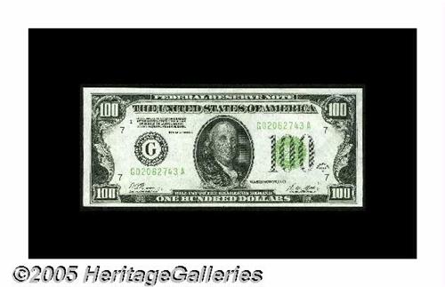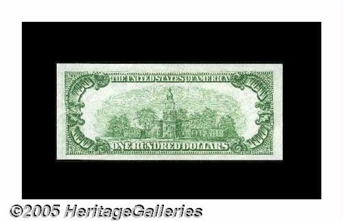 <B>Fr. 2151-G $100 1928A Federal Reserve Note. Choice-Gem CU.</B></I><BR>Excellent print quality is found on this embossed C-note.