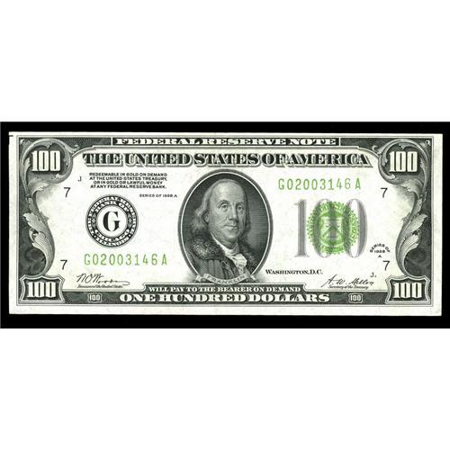<B>Fr. 2151-G $100 1928A Federal Reserve Note. Choice Crisp Uncirculated.</B></I><BR>A hint of light handling is noted, but does nothing to detract from the overall eye appeal.