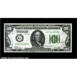 Fr. 2151-G $100 1928A Federal Reserve Note. Choice Crisp Uncirculated.An attractive and well printed example with excellent color and body. Important notice: We expect to be auctioning lots at the rate of 200-250 per hour. Sometimes eBay Premier live bid software cannot keep up with that pace, so we strongly recommend that you place a realistic proxy bid now as insurance to avoid disappointment. Also please note that all Heritage/CAA lots purchased through eBay Premier carry a 20% Buyer's Premium. Please make sure you read the Terms and Conditions.