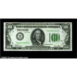 Fr. 2151-H $100 1928A Federal Reserve Note. Choice Crisp Uncirculated.First of a consecutive pair, both with excellent color. The top margin here is just a hair too close to make the gem grade. Important notice: We expect to be auctioning lots at the rate of 200-250 per hour. Sometimes eBay Premier live bid software cannot keep up with that pace, so we strongly recommend that you place a realistic proxy bid now as insurance to avoid disappointment. Also please note that all Heritage/CAA lots purchased through eBay Premier carry a 20% Buyer's Premium. Please make sure you read the Terms and Conditions.