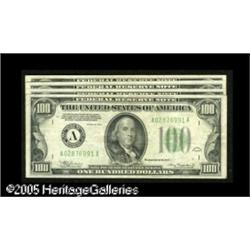 <B>Fr. 2152-A (2), D, F $100 1934 Mule Federal Reserve Notes. Fine or Better.</B></I><BR>The Cleveland C-note tips the scales at Choice CU, while the other three notes span the Fine to AU grades. Also, three of the notes are the low or high serial number as recorded in Oakes.<BR> 4 notes Lot:16327