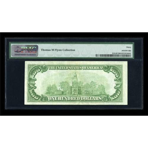 <B>Fr. 2152-B* $100 1934 Light Green Seal Federal Reserve Note. PMG Very Fine 30.</B></I><BR> A nice example of the elusive $100 1934 LGS star.<BR><I>From The Thomas M. Flynn Collection</B></I><BR><BR><b>Shipping:</b> Coins & Currency (<a target="_blank" href="http://www.heritageauctions.com/common/shipping.php">view shipping information</a>)
