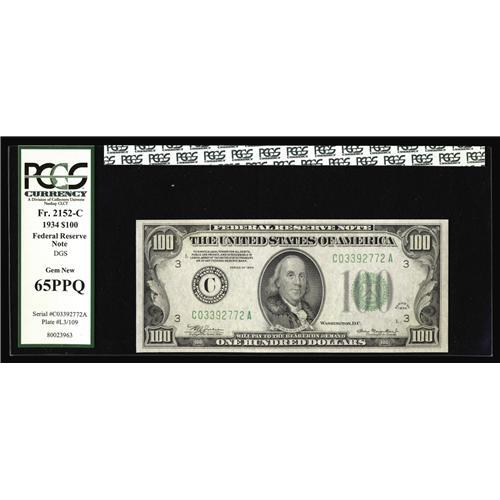 Fr. 2152-C $100 1934 Federal Reserve Note. PCGS Gem New Fr. 2152-C $100 1934 Federal Reserve Note. P