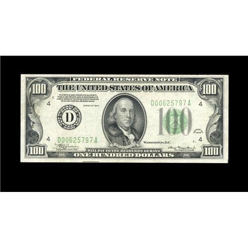 Fr. 2152-D $100 1934 Federal Reserve Note. Gem Crisp Un Fr. 2152-D $100 1934 Federal Reserve Note. G