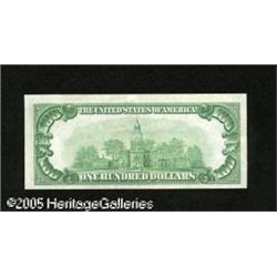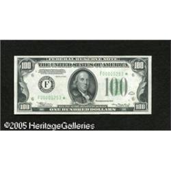 <B>Fr. 2152-F* $100 1934 Federal Reserve Note. Choice Crisp Uncirculated.</B></I><BR>Crackling fresh and fully original, a lovely and rare star note despite the fact that our consignor was fortunate enough to obtain two such examples. This bears the lowest serial number reported in Oakes. Lot:16334