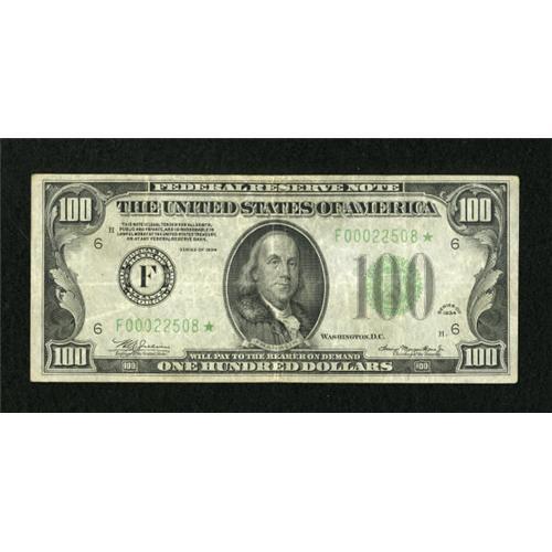 Fr. 2152-F* $100 1934 Federal Reserve Star Note.