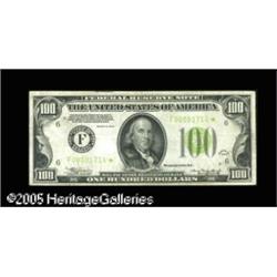 <B>Fr. 2152-F* $100 1934 Light Green Seal Federal Reserve Note. Fine-Very Fine.</B></I><BR>A just plain rare LGS star which is the sole serial number recorded from the district in the Oakes reference. Lot:16335