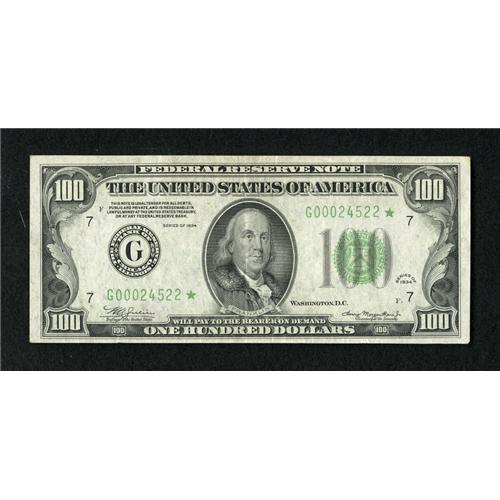 Fr. 2152-G* $100 1934 Federal Reserve Note. Extr
