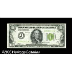 <B>Fr. 2152-J* $100 1934 Light Green Seal Federal Reserve Note. Extremely Fine.</B></I><BR>The only serial number recorded in LGS notes from this district, and a peach of an item as well. Lot:16342
