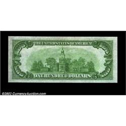 Fr. 2152-K $100 1934 Federal Reserve Note. Choice Crisp Uncirculated.The margin is just a touch close on the right on this most appealing Dallas district example. Important notice: We expect to be auctioning lots at the rate of 200-250 per hour. Sometimes eBay Premier live bid software cannot keep up with that pace, so we strongly recommend that you place a realistic proxy bid now as insurance to avoid disappointment. Also please note that all Heritage/CAA lots purchased through eBay Premier carry a 20% Buyer's Premium. Please make sure you read the Terms and Conditions.