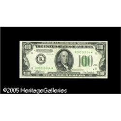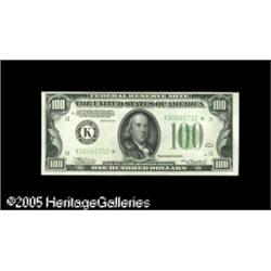 <B>Fr. 2152-K* $100 1934 Federal Reserve Notes. About Uncirculated.</B></I><BR>A pair of Dallas C-note stars, one with a heavy centerfold and the other with some light handling quite close to the full uncirculated grade. 2 notes Lot:16346