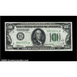 Fr. 2153-B* $100 1934A Mule Federal Reserve Note. Gem Crisp Uncirculated.A very scarce star which is