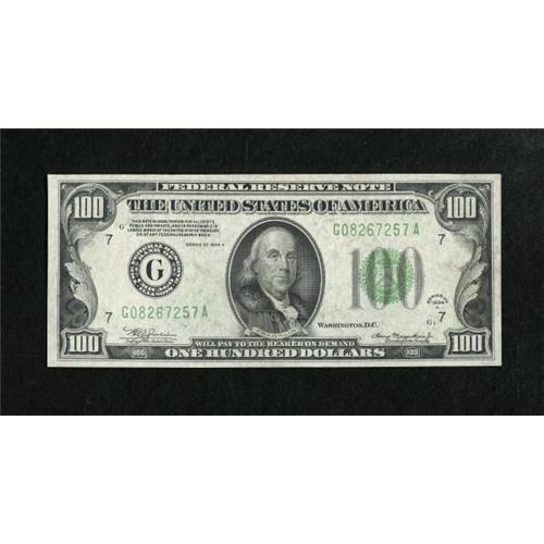 Fr. 2153-G $100 1934A Federal Reserve Note.