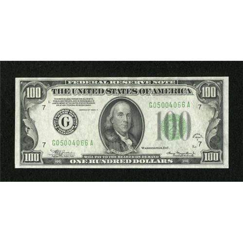 Fr. 2153-G $100 1934A Federal Reserve Note.