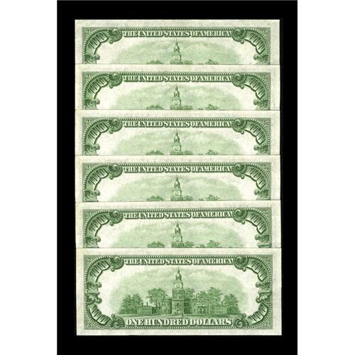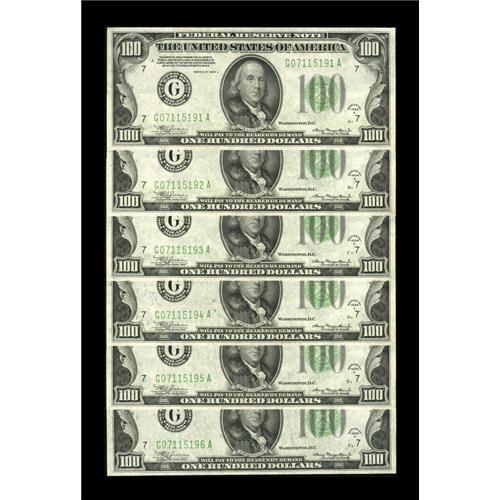 Fr. 2153-G $100 1934A Federal Reserve Notes. Six Consec