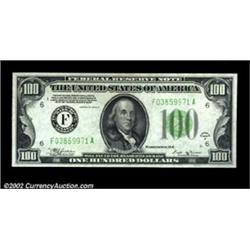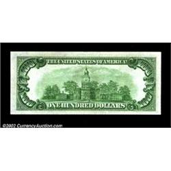 Fr. 2154-F $100 1934B Mule Federal Reserve Note. Choice Crisp Uncirculated.A scarce series in general, with this district one which is seldom seen in this grade. Important notice: We expect to be auctioning lots at the rate of 200-250 per hour. Sometimes eBay Premier live bid software cannot keep up with that pace, so we strongly recommend that you place a realistic proxy bid now as insurance to avoid disappointment. Also please note that all Heritage/CAA lots purchased through eBay Premier carry a 20% Buyer's Premium. Please make sure you read the Terms and Conditions.