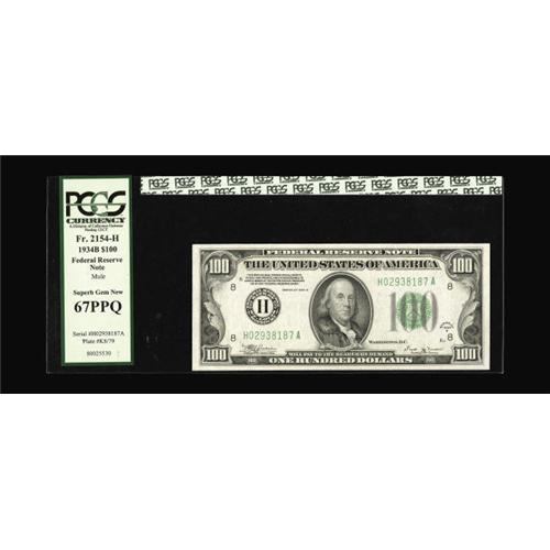<B>Fr. 2154-H $100 1934B Mule Federal Reserve Note. PCGS Superb Gem New 67PPQ.</B></I><BR>A St. Louis note in a rarely bestowed certified grade.