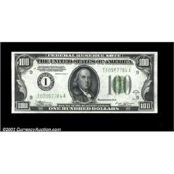 Fr. 2154-I $100 1934B Mule Federal Reserve Note. Gem Crisp Uncirculated.A nicely centered and brightly colored example from this much in demand district. Expect to see this easily reach and likely exceed the Oakes catalogue value of $450. Important notice: We expect to be auctioning lots at the rate of 200-250 per hour. Sometimes eBay Premier live bid software cannot keep up with that pace, so we strongly recommend that you place a realistic proxy bid now as insurance to avoid disappointment. Also please note that all Heritage/CAA lots purchased through eBay Premier carry a 20% Buyer's Premium. Please make sure you read the Terms and Conditions.