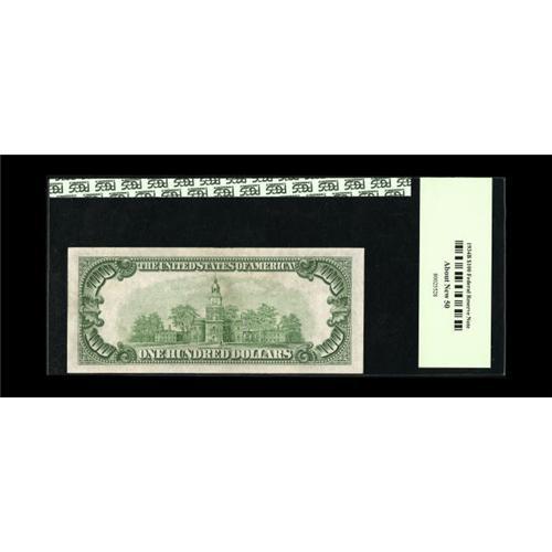 <B>Fr. 2154-I $100 1934B Mule Federal Reserve Note. PCGS About New 50.</B></I><BR>A certified note that is well centered and quite close to full uncirculated status.