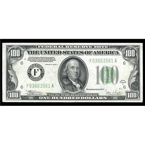 Fr. 2155-C $100 1934C Federal Reserve Note. Crisp Uncir Fr. 2155-C $100 1934C Federal Reserve Note.