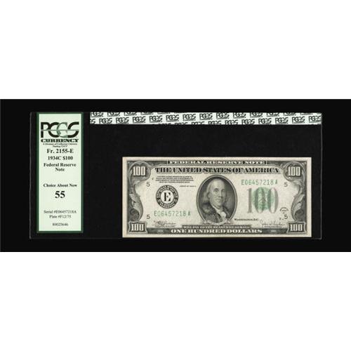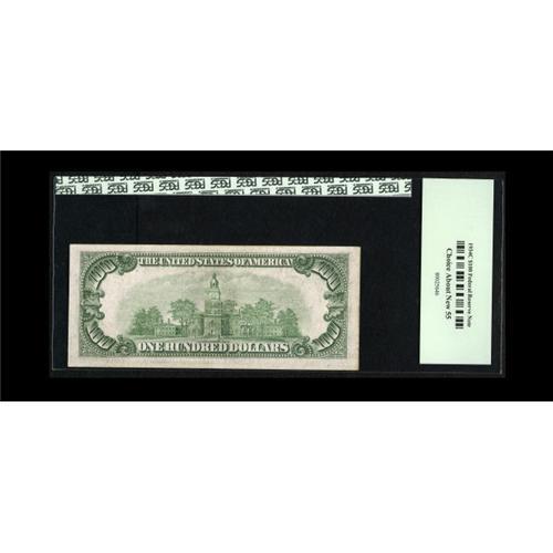 <B>Fr. 2155-C $100 1934C Mule Federal Reserve Note. PCGS Choice About New 55.</B></I><BR>A nicely centered note just shy of a higher grade.
