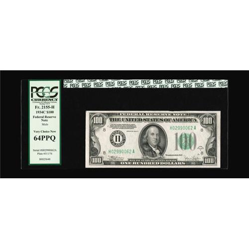 <B>Fr. 2155-H $100 1934C Mule Federal Reserve Note. PCGS Very Choice New 64PPQ.</B></I><BR>This St. Louis district note has a bit of a rough spot at top edge, possibly keeping it from Gem.
