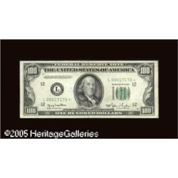 <B>Fr. 2157-L* $100 Mule 1950 Federal Reserve Note. Very Fine+.</B></I><BR>San Francisco is represented by only one mule star in the fifth edition of Oakes, with this newly discovered star marching to the high serial number position. A trace of teller ink is to the left of the portrait. Lot:16401