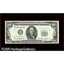<B>Fr. 2158-B* $100 1950A Federal Reserve Note. Gem Crisp Uncirculated.</B></I><BR>This is the highest recorded New York star serial number for this scarce series for replacements. Wide margins and embossing highlight this delightful star. Lot:16405
