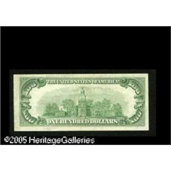 <B>Fr. 2158-D* $100 1950A Federal Reserve Note. Extremely Fine-About Uncirculated.</B></I><BR>Cleveland is one of three districts for this series that Oakes lists only one star serial number for. This note will become the new low serial number. Also, a faint vertical and lateral center fold are found on this note. Lot:16408