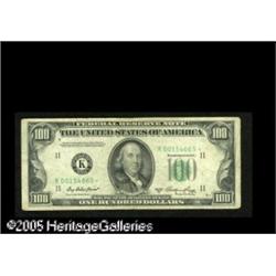 <B>Fr. 2158-K* $100 1950A Federal Reserve Note. Fine-Very Fine.</B></I><BR>Dallas is represented by just one star serial number in Oakes, with this example being the future occupant of the low serial number slot. It has the folds of a VF, but was carried as a wallet piece by a proud owner. Lot:16413