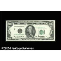 <B>Fr. 2159-D* $100 1950B Federal Reserve Note. Gem Crisp Uncirculated.</B></I><BR>Wide margins and nice centering combine on this well preserved star that has the second lowest printing of any district for this series. Lot:16418