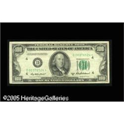 <B>Fr. 2159-D $100 1950B Federal Reserve Note. Very Fine.</B></I><BR>Even wear encompasses this new high serial number. Lot:16417