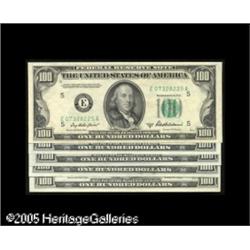 <B>Fr. 2159-E $100 1950B Federal Reserve Note. Gem Crisp Uncirculated.</B></I><BR><B>Fr. 2159-G $100 1950B Federal Reserve Note. Choice Crisp Uncirculated.</B></I><BR><B>Fr. 2159-H $100 1950B Federal Reserve Note. Choice About Uncirculated.</B></I><BR><B>Fr. 2159-I $100 1950B Federal Reserve Note. Choice About Uncirculated.</B></I><BR><B>Fr. 2159-L $100 1950B Federal Reserve Note. Choice About Uncirculated.</B></I><BR>Just a hint of handling is spotted on the three notes that are less than Unc.<BR> 5 notes Lot:16419