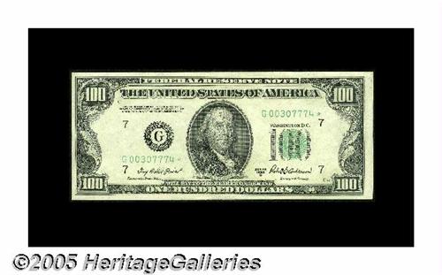 <B>Fr. 2159-G* $100 1950B Federal Reserve Note. Choice Crisp Uncirculated.</B></I><BR>A nicely embossed and crackling-fresh star example. With a hair better centering, this piece would easily merit the full gem grade.