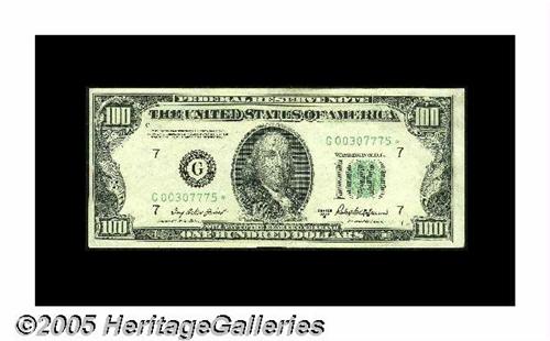 <B>Fr. 2159-G* $100 1950B Federal Reserve Note. Choice Crisp Uncirculated.</B></I><BR>Consecutive to the last and just as nice.