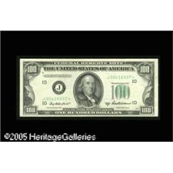 <B>Fr. 2159-J* $100 1950B Federal Reserve Note. Choice Crisp Uncirculated.</B></I><BR>This KC $100 has three broad margins, and will become the new high star serial number in Oakes. Lot:16425