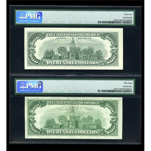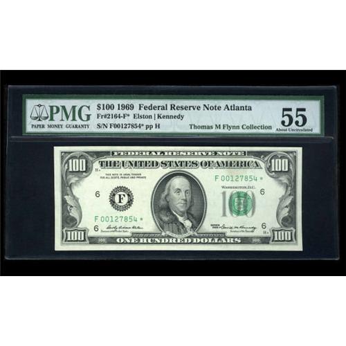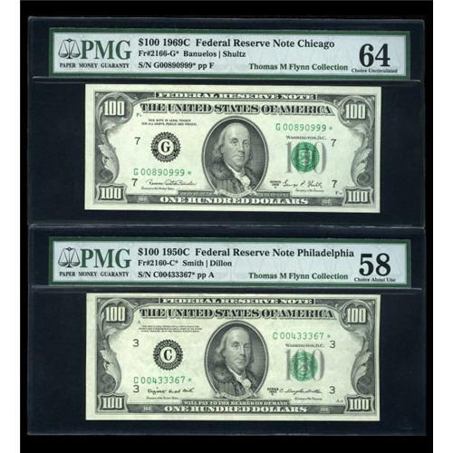 <B>Fr. 2160-C* $100 1950C Federal Reserve Note. PMG Choice About Unc 58.<BR>Fr. 2164-F* $100 1969 Federal Reserve Note. PMG About Uncirculated 55.<BR>Fr. 2166-G* $100 1969C Federal Reserve Note. PMG Choice Uncirculated 64.</B></I><BR> A nice trio of Fed stars.<BR><I>From The Thomas M. Flynn Collection</B></I><BR><BR><b>Shipping:</b> Coins & Currency (<a target="_blank" href="http://www.heritageauctions.com/common/shipping.php">view shipping information</a>)